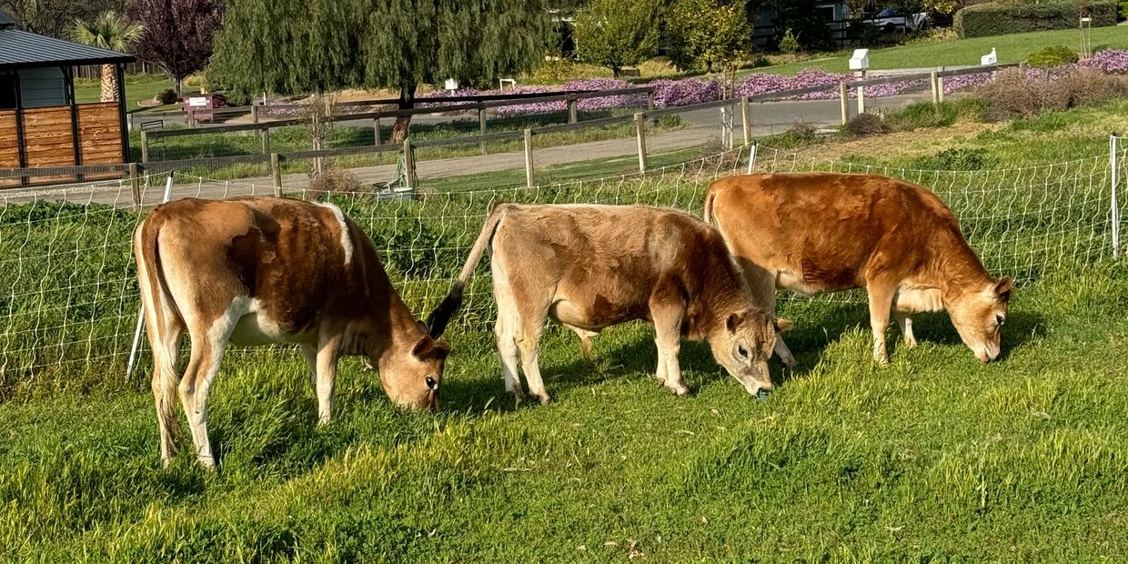 Our next three Mini Jersey calves are planned to be born in Summer 2026. We do not take reservations until calves are born, so make sure to watch our website and social media to stay informed about births. At this time we are only selling bull and heifer calves, not bred heifers, cows, or proven bulls. Our calves are raised by their dams and the rest of our small herd and weaned and ready for their new homes at four months old. We disease test our adult cows and bull for Bovine Leukemia Virus (BLV), Bovine Viral Diarrhea (BVD), and Paratuberculosis (Johne's disease) on an annual basis. We do not test our cattle for Brucellosis or Tuberculosis (TB) as California has been accredited bovine free of both since 1997 and 2016, respectively.